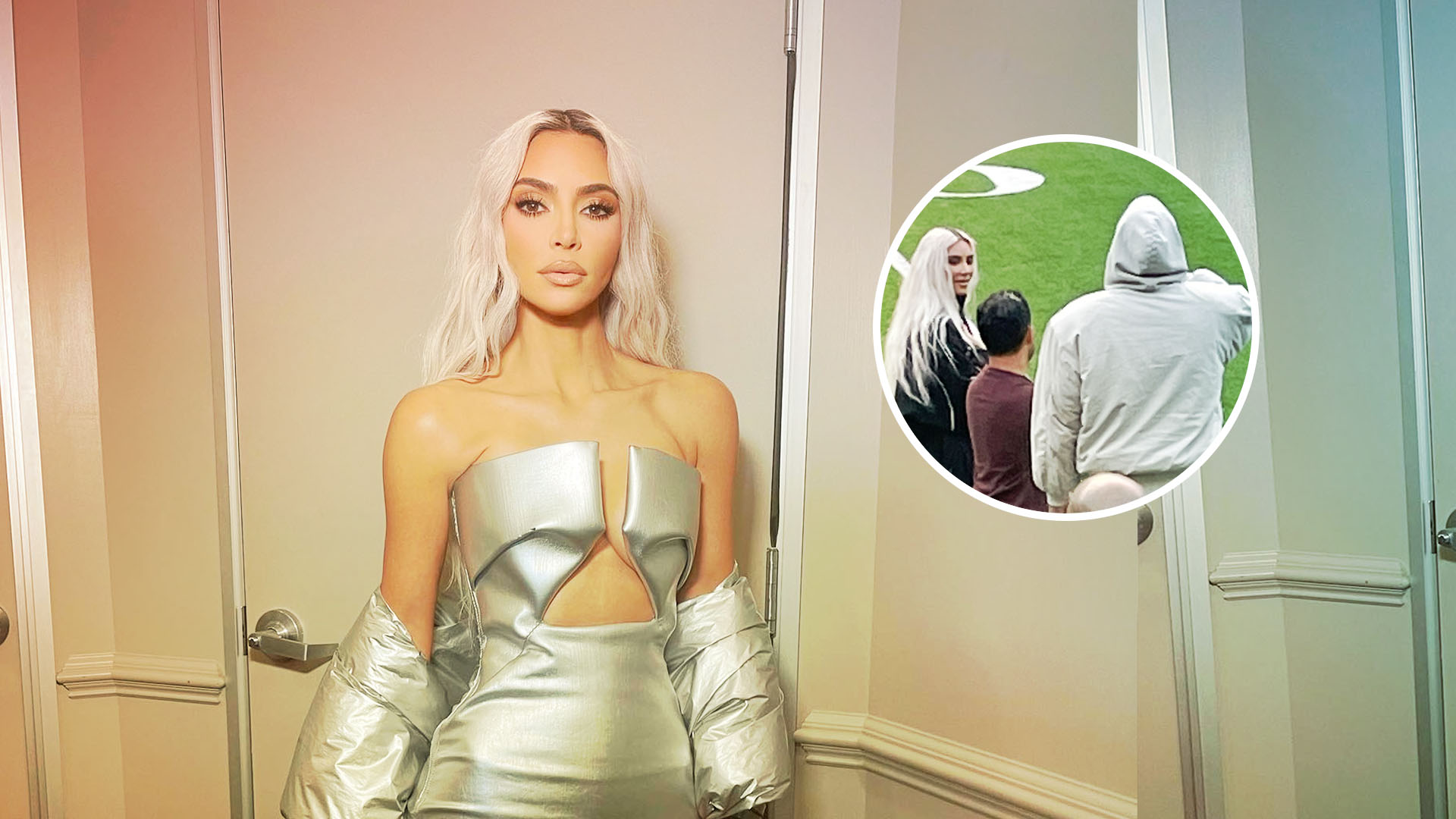 Kim Kardashian was seen wearing a black jacket and black biker shorts. She had her blonde hair open down. On the other hand, Kanye West was wearing a grey hoodie with white pants. They both were focused on the game of their son Saint who had the final match in his Football season.