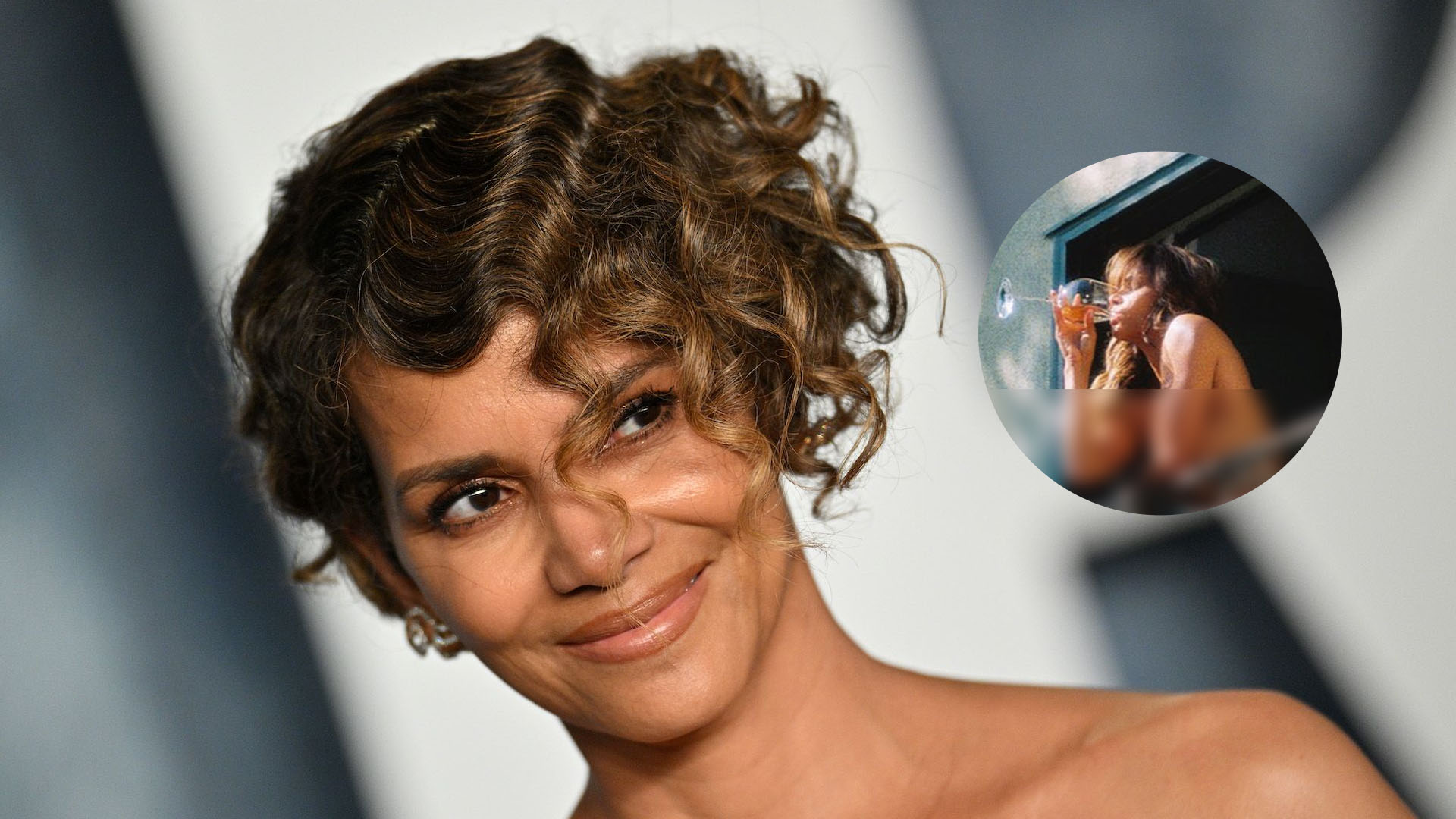 Halle Berry Drinking Wine In Her Balcony.